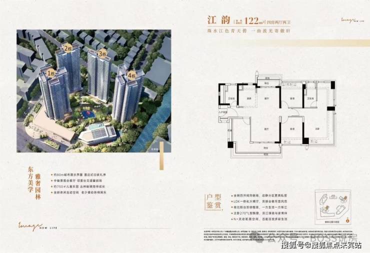 其中,1#和4#为塔楼设计,两梯四户,约86㎡三房和120㎡四房。