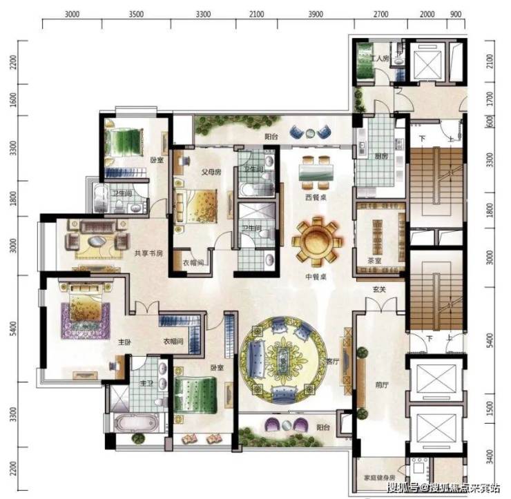 6房2厅4卫3套房、22㎡入户花园,全市稀缺约80㎡客连餐厅,3.5米层高,尽享墅级尺度南北通透双阳台、南看香港山景、北看水库8米宽景阳台,山景、海景、园林多重景观随心赏悦奢阔主卧,独立衣帽间,超宽豪华洗手间,尊享私密生活三梯两户,专梯刷卡入户,设有保姆专用电梯L型厨房带多功能储物间,收揽梧桐山景烹饪