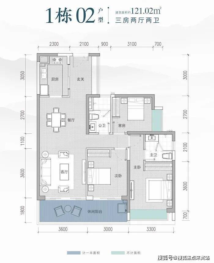 1栋02户型 121.02㎡