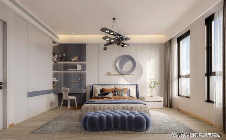 儿子房的氛围更加明朗,灰色的主色调加上明亮的窗户设计,每天都能感受到外面的阳光,温暖,明亮,舒适,就是儿子房的整体概括。