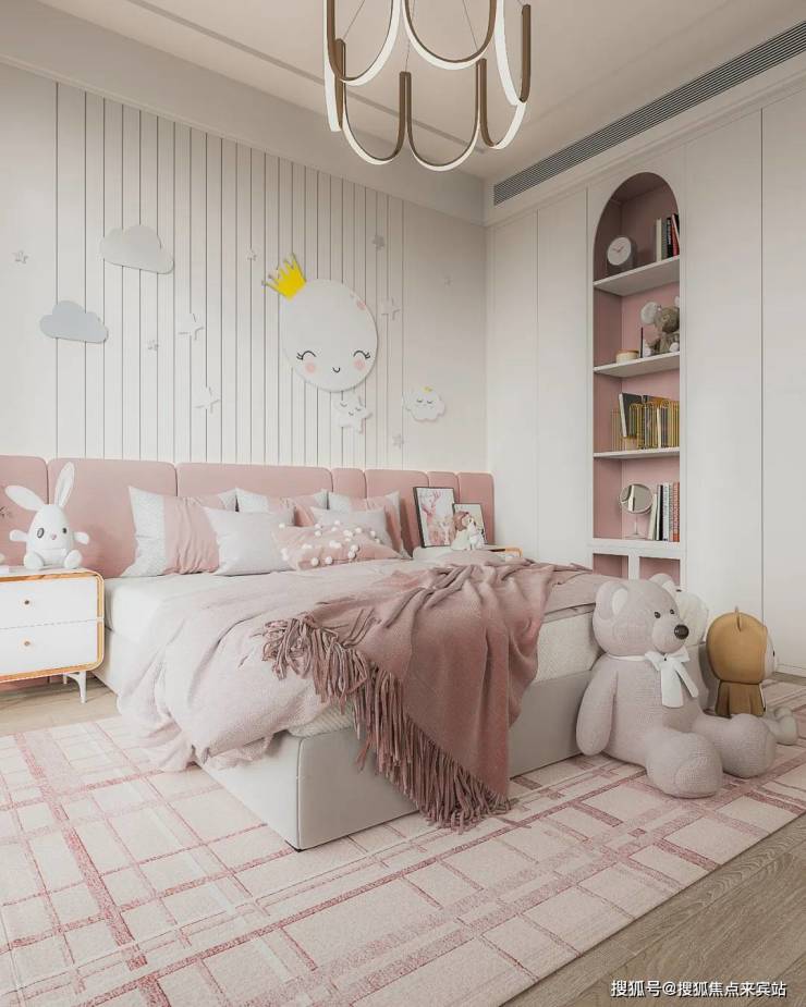 软装将它所特有的温度传递至卧室之中,不同的空间便有了不一样的温暖,女儿房以粉色为主色调,整个空间都弥漫着浪漫的气息。
