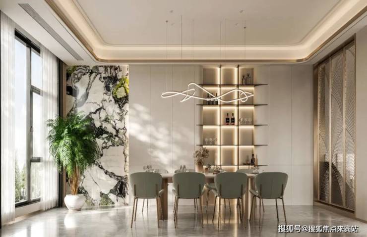 采用了浅草绿作为整个空间搭配色,绝对是整个空间最美丽的存在,一眼望过去的水波荡漾,在立体空间里呈现出湖水的清凉。