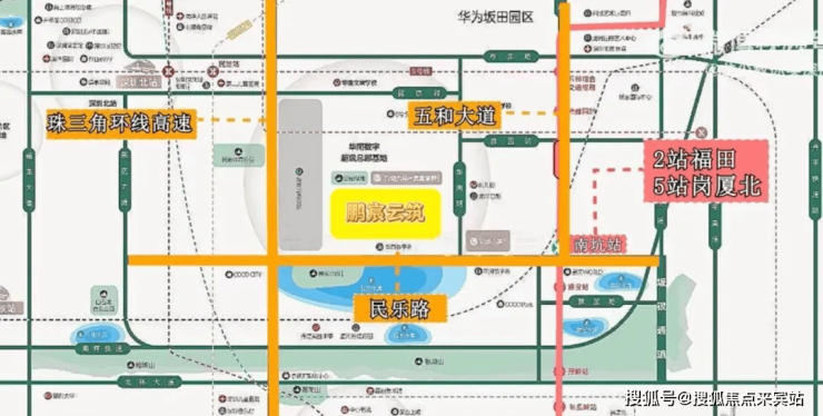 地铁:项目距离地铁10号线南坑站约600-700米,2站直达福田,4站至深圳北站,5站换乘岗厦北枢纽,实现1小时湾区通勤。周边还有5号线民治站、6号线白石龙站及规划中的22号线,形成四通八达的地铁网络。