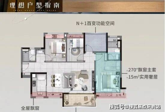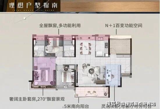 采用LDK布局,连通270°朗阔阳台,南北对流主卧套房,L型瞰景飘窗