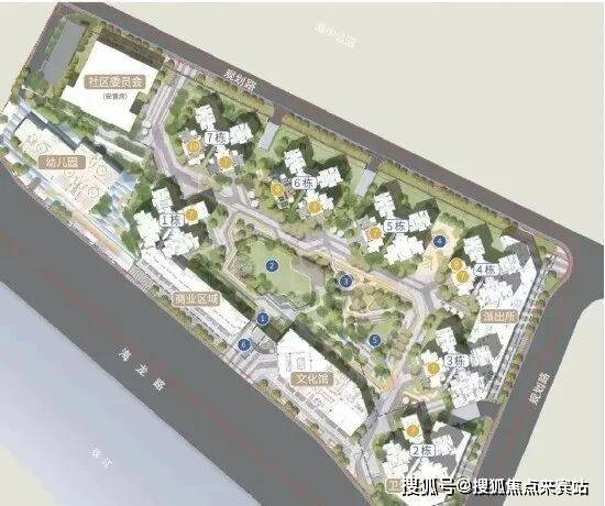 整个项目体量不大,采用半围合式望江布局,做到了80%户型望江。