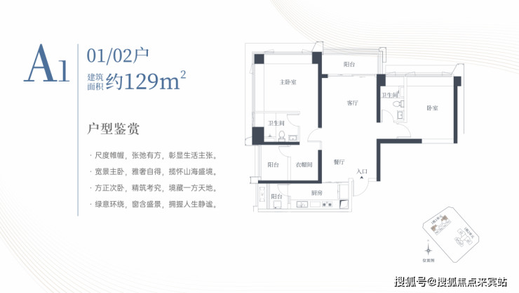 1栋一单元A1、A2户型:面积约为129㎡
