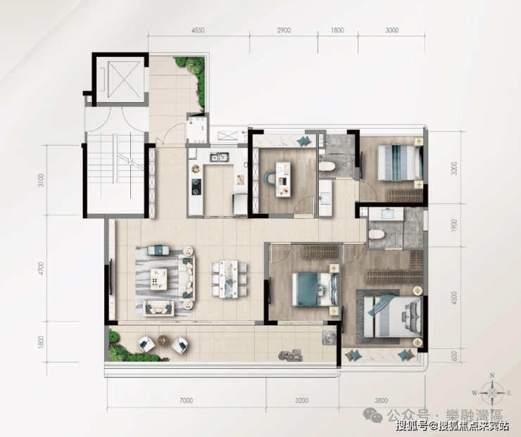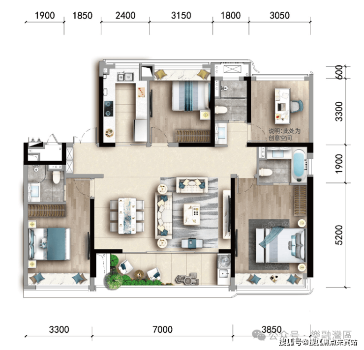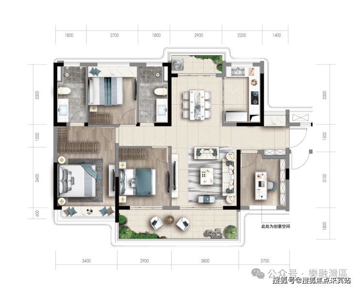 約120㎡ 南北雙陽台·約6.7米南向瞰景大陽台