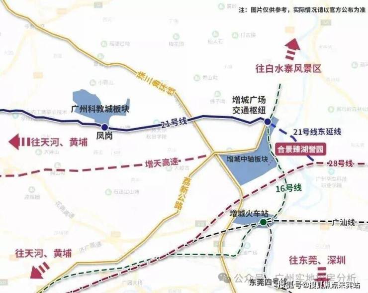 当前依赖自驾(新城大道/荔新快速路),21号线增城广场站约5公里;规划中的16号线(挂绿湖站)、28号线支线若落地将提升通勤效率。