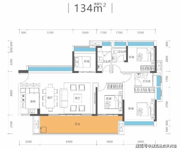 端头位:总赠送约270㎡,总面积达450㎡,赠送率160%;花园面积约100㎡