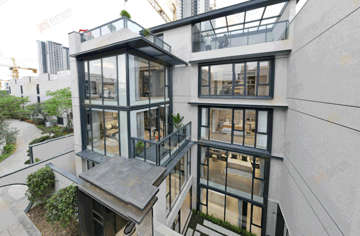 270度全明水晶院,项目采用后现代主义风格的别墅,外墙采用大面积的落地玻璃窗,形似优雅的水晶,增加室内光亮的同时还可以更好的欣赏窗外的风景。