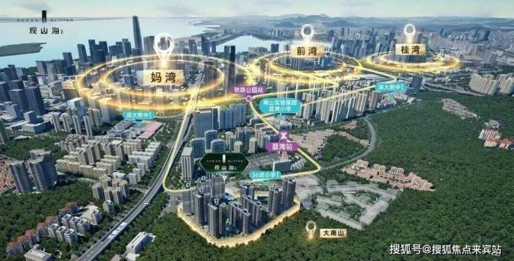 (二)教育资源丰富优质:一路之隔规划36班小学(暂定名荔山小学),对口南山实验教育集团荔湾小学,中学为深大附中(广东省一级学校),周边聚集荟同国际学校、哈罗国际学校等名校。