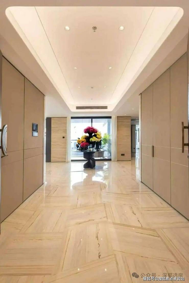 门口电梯厅约12.73㎡可以私用,增加了公共活动区域。各个房间面积较均匀,适合大家庭居住,但是主卧空间感不足,对比「前海时代三期」的250㎡户型要弱,其他方面开间面更大,过道浪费更少,餐厨动区可以更好的结合。