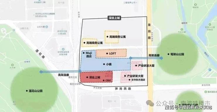 【1】连接山体公园,坐享自然景观;独特的区位是深业上城最大的优势 最大的优势是横越深圳三大城市公园,位于莲花山公园与笔架山公园之间,远眺中心公园,尽享4700亩城市绿肺。主干道彩田路、笋岗西路和皇岗路将项目环绕呈围合之势,北与三星视界厂区相接。