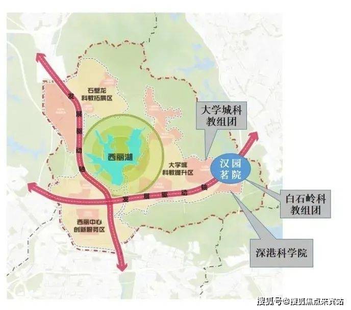 大学城片区位于大沙河创新走廊上游,属于南山区北部重要的生产生活服务中心,周边有多个深圳重大战略产业集群