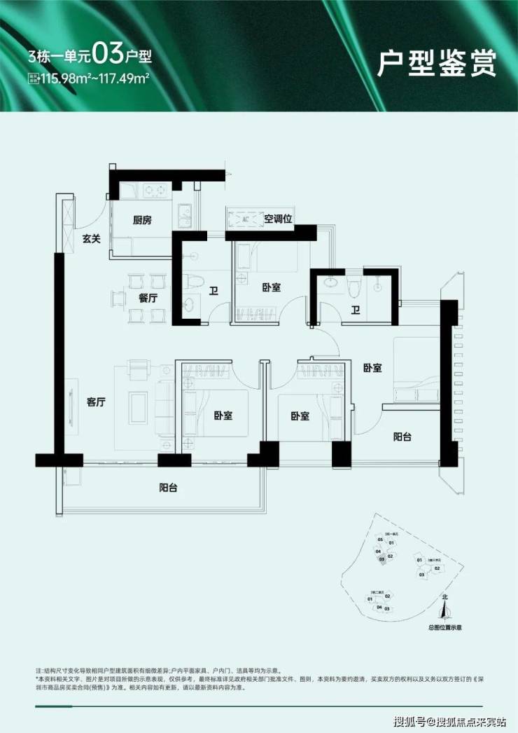A区主要由5栋住宅组成,二、三、四单元45层,一、五单元46层,其中一单元为保障房,不与其他商品房混在一栋楼里,朝向大都是西南/东南向,少数腿正南向,三单元15楼以上及四、五单元为本次推售楼栋,面积109~169㎡的三-四房,另有12套顶楼复式。