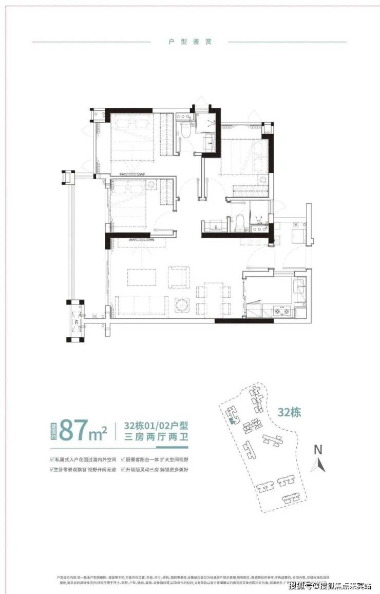 此次广地花园·观灏加推的新品32栋悦景楼座,面积段分别为86m²、96m²、100m²悦景三房,多面采景,三面望水,通透采光,充分利用户型的每一寸肌理,以有限的生活空间焕发更多生活灵感,打造全方位人性化居所。