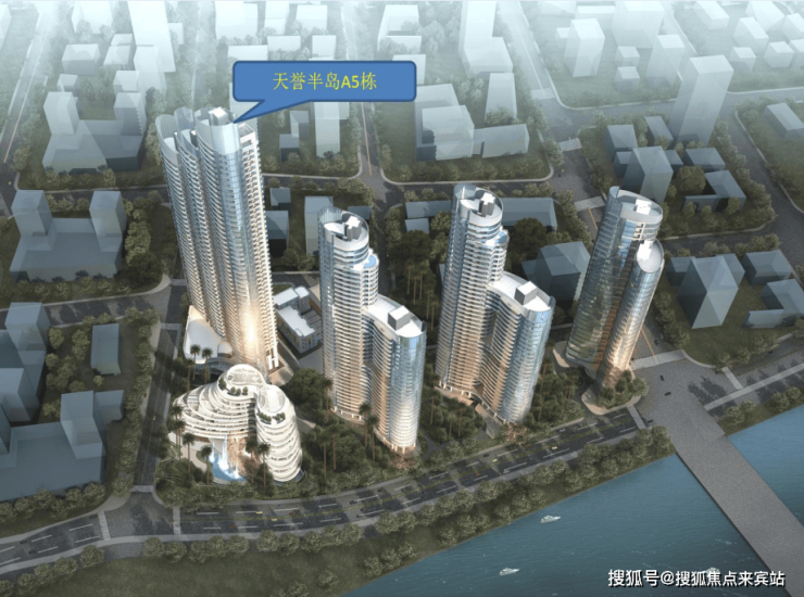 天誉半岛花园位于海珠区洲头咀,白鹅潭畔,三江汇聚之源,270度稀缺一线江景。小区共建7栋单体建筑:A1为酒店,A4为写字楼,A2/A3/A5-A7为超高层住宅。