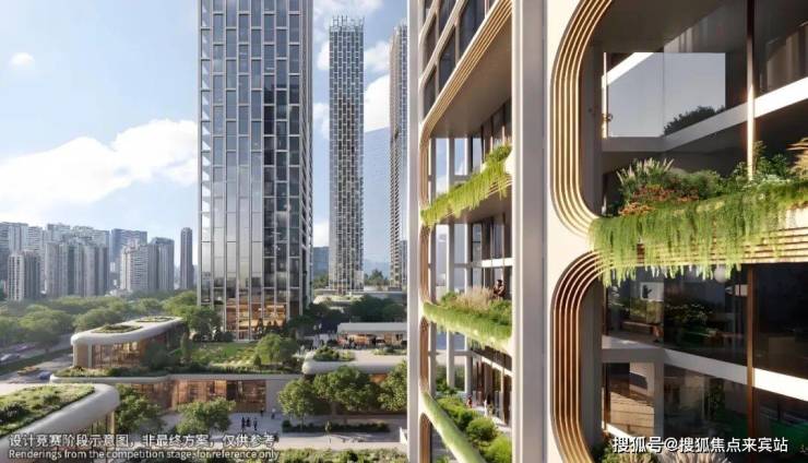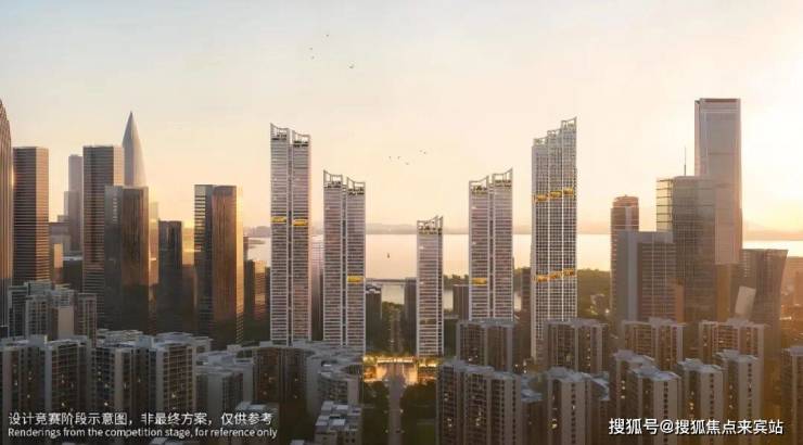 建筑规划:5栋超高层塔楼(4栋住宅+1栋公寓),高度分别为150米、200米、200米、240米(住宅)及250米(公寓)