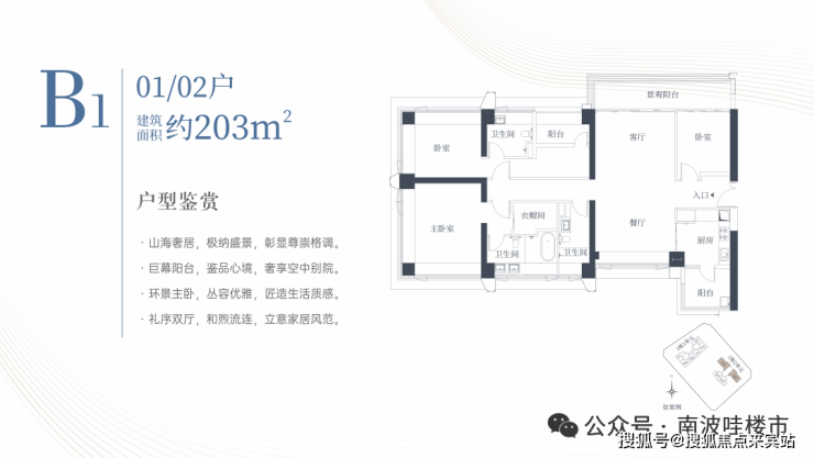 匠筑建面约124-203㎡全生命周期天幕户型,360°采光通风,270°环景主卧,山海日常推窗可得。背山面海,藏风聚气,家宅福泽之地。