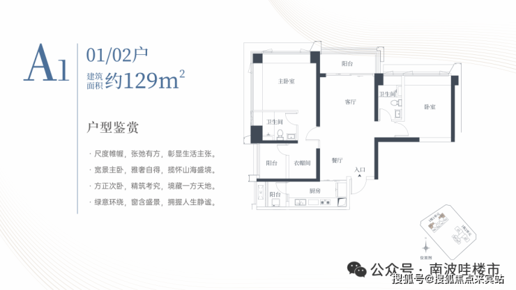 🔹1栋一单元A1、A2户型:面积约为129㎡