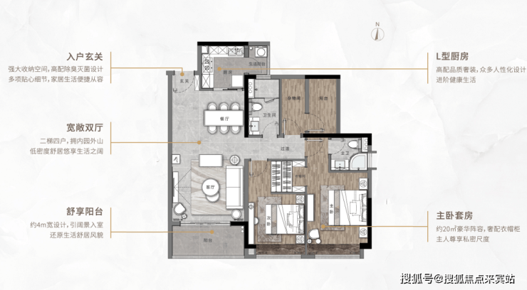 双阳台南北对流,6.5m超宽景观阳台,望大夫山、园林中轴双重景致;