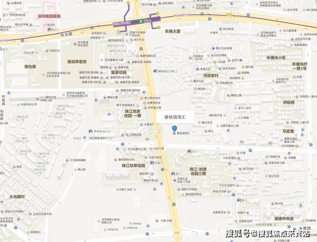 先说碧桂园荣汇周边现状吧。碧桂园荣汇东临河贝村旧改,以居住小区为主;北临富豪花园别墅区和占地约1万㎡的儒骏城立方,也是住宅,已建成并售罄;南面是成熟社区珠江旭景佳园三期和在建中占地4.6万㎡的诺德中央道二期;西临坂雪岗大道,一路之隔是成熟社区珠江旭景佳园一期和富豪花园住宅、德润荣君府;西南面还有即将以现楼入市的42万㎡建面综合体大族云峰。