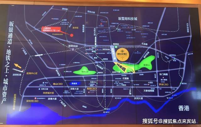 碧桂园荣汇位于坂雪岗大道与中兴路交汇处,附近地铁站有5号线——坂田站,项目距离坂田站B出口约5分钟步行距离。