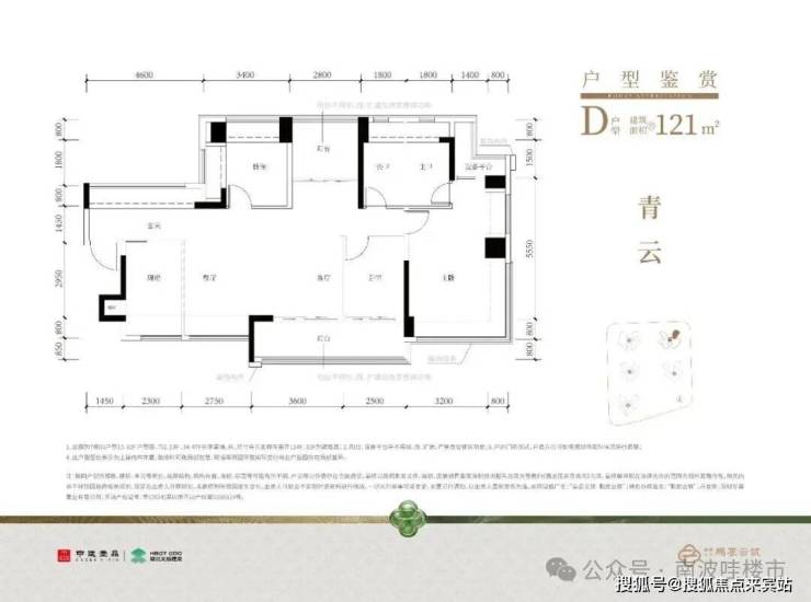 面积有89㎡3房2厅2卫,103-121㎡的4房2厅2卫户型,共262套房源,总高47层,全南向户型,层高3.1米。