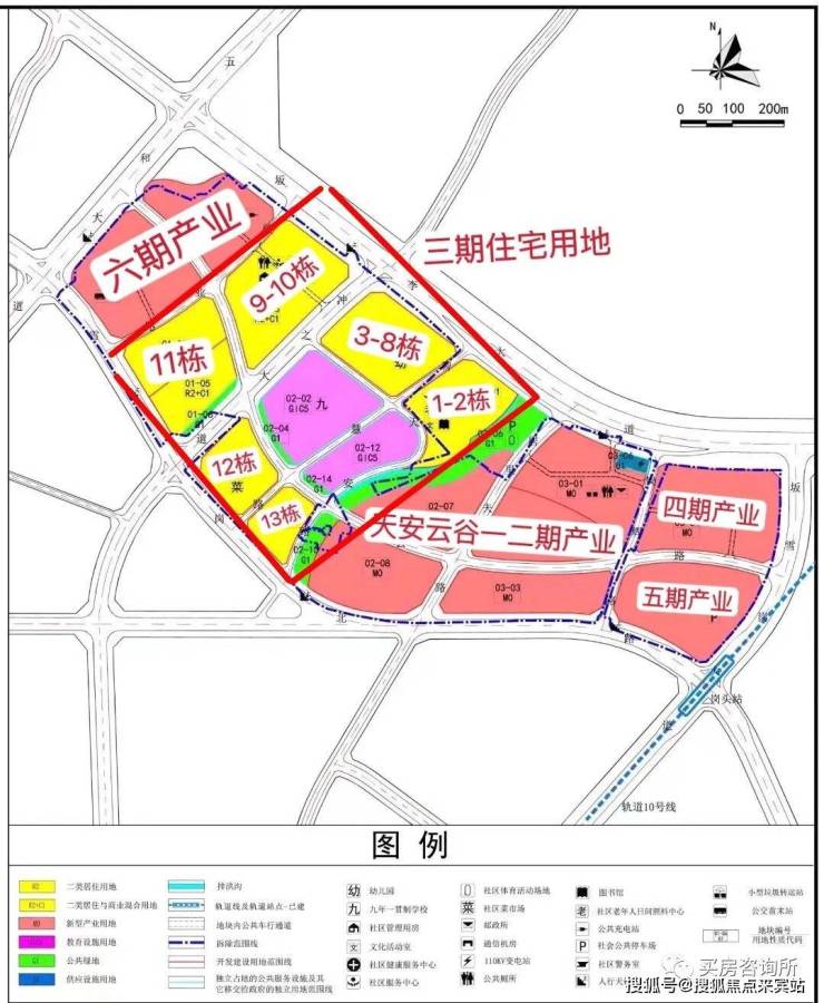 本次将要推出的是天安云谷三期,共由8个地块组成,总占地面积约13.14万㎡,总建筑面积约128.3万㎡,是天安云谷首个住宅项目,建成后将有21栋住宅+2栋酒店+2栋公寓办公,配建有1所12班+1所18班幼儿园,另外还规划有1所90班的国际化中小学,分54班公立班和36班国际班组成,总规划6526户。