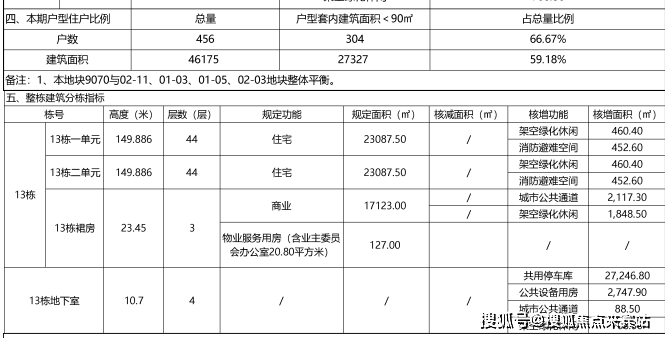 13栋用地性质为二类居住用地,总占面约1.1万㎡,规划建面约6.3万㎡,其中住宅建面约4.6万㎡、商业约7.1万㎡,及相关物业服务用房。