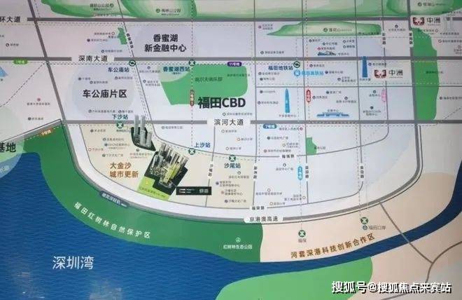 深圳中洲湾迎海二期位于福田区沙头街道上沙社区,地处福田大金沙片区。该片区是目前整个福田区域内城市更新地块最大的区域,包括了沙尾村、沙嘴村、上沙村、下沙村,政府投入了300亿进行规划,后续将规划总建面350万㎡的住宅和412万㎡的产业空间。这一区域是深圳核心区域内目前唯一一个产城一体化的城市更新单元,具有巨大的发展潜力。