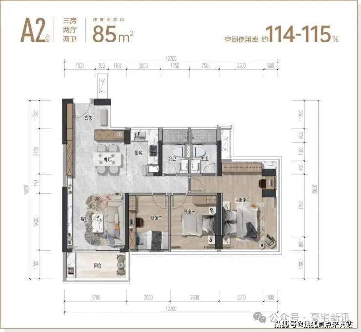 产品面积段:建面约85㎡-175㎡高得房率奢阔三至五房 新规好宅