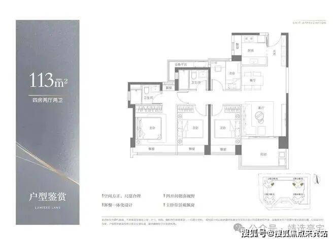 产品:建面约83-113㎡3-4房品智美学住宅,多面宽朝阳,揽清风入怀;