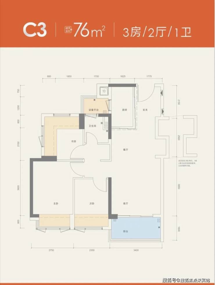 76㎡的3房2厅1卫,折后总价192-222万/套,单价2.52-2.92万/㎡。