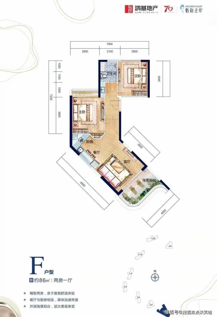 【C户型】81㎡ 精致两房一厅私密空间布局,双曲线阳台设计,盛揽壮阔外海海观。