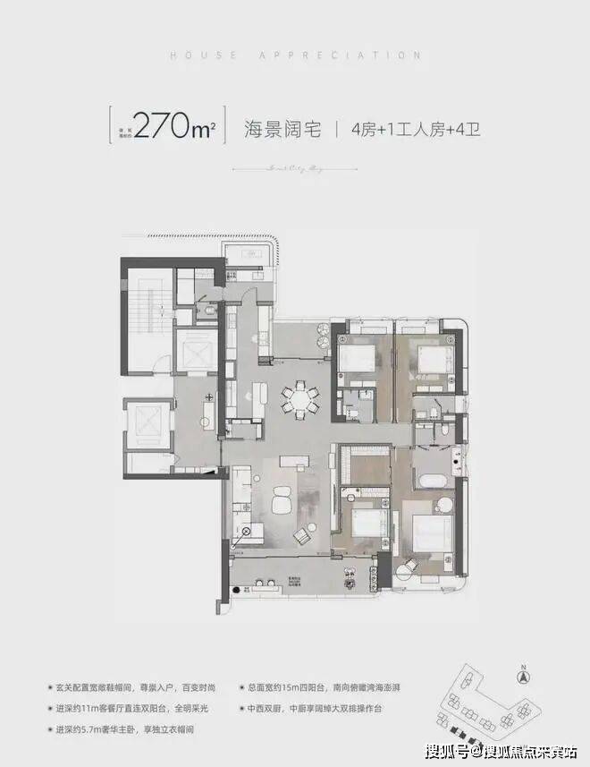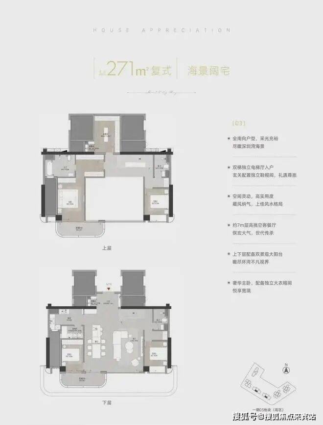 1️⃣A 户型(竖厅户型),西南朝向122-124 平(04、05)看红树林湿地及海景