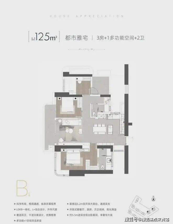 2️⃣B 户型(双龙抱珠户型) ,西北朝向 122-124 平(06 )看绿地公园及花园