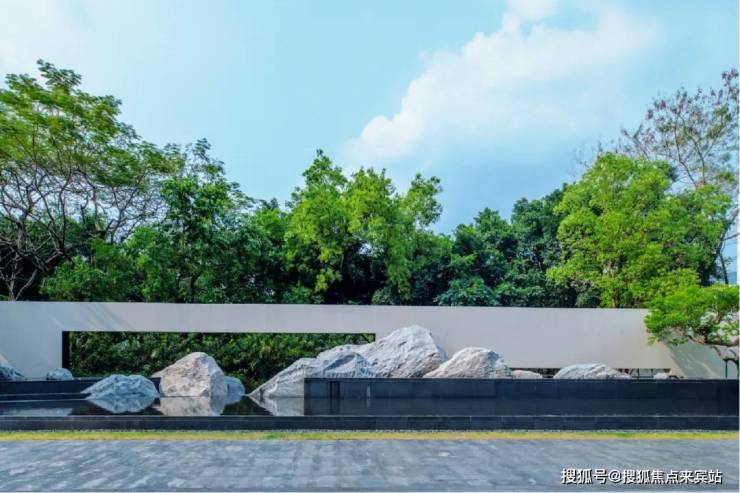 山水景观墙由上百吨的原石精心雕琢而成,每一块原石都重达几十吨,经过精雕细琢,巧妙地设计成了一幅栩栩如生的山水画景观;