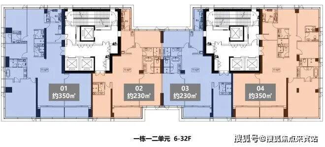 01户型 西端户 约350㎡ 四房两厅四卫(01、04镜像对称)南、西、北,三面景观视野,看深圳湾海景、内海景、城市景观