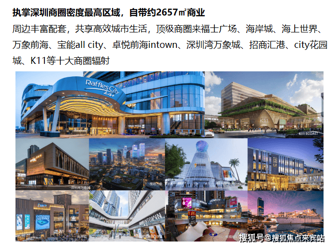 周边丰富配套,共享高效城市生活,顶级商圈来福士广场、海岸城、海上世界、万象前海、宝能all city、卓悦前海intown、深圳湾万象城、招商汇港、city花园城、K11等十大商圈辐射
