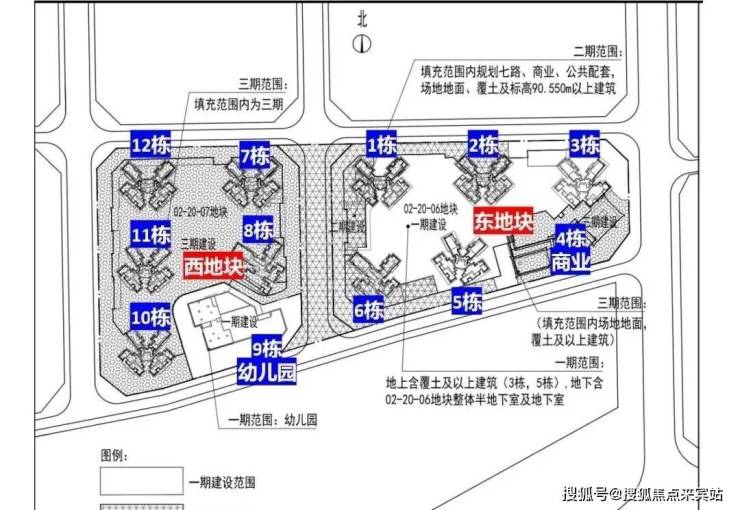 东区:占地约2.1万㎡,容积率5.28,包含住宅、商业、文化活动室、老年人日间照料中心和其他基础配套设施。1栋、2栋总高47F,3T6户;3栋、5栋总高32F,2T6户;6栋总高32F,2T5户;4栋属于商业,总高2层。