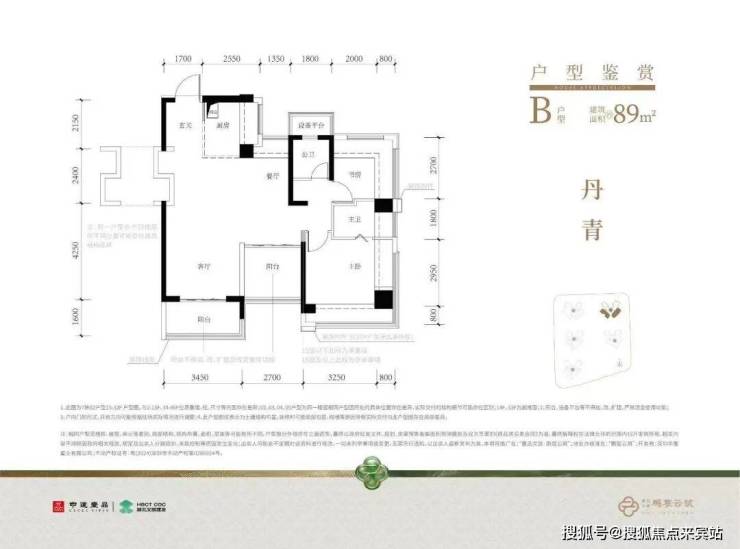 89㎡的4房2厅2卫,设计的是经典竖厅格局,进门入户玄关,客厅3.45米开间,动静分区,三开间朝南,分别做到了主卧14.54㎡/次卧7.96㎡/次卧7.56㎡/次卧5.8m²(包含墙体飘窗),主卧+1个次卧270°飘窗,U型厨房,公卫三段式干湿分离,得房率约102.2%(包含赠送),阳台5.52m²西南或东南朝向。飘窗赠送面积13.17m²+阳台赠送面积6.61m²+设备平台1.8m²=实际赠送面积约21.58m²。