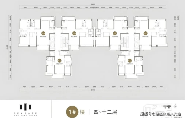 1栋:212㎡的4房、137㎡、185㎡、192㎡的3房