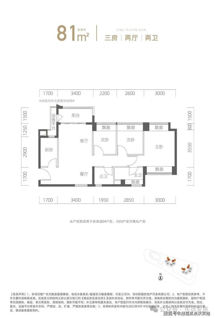 建面约81㎡3房2厅2卫整体通透户型