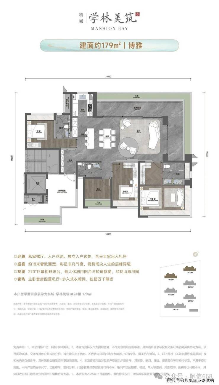 本宣传资料仅为项目信息公示用途,不构成《商品房买卖合同》的要约或承诺。宣传内容中涉及的项目规划、周边配套、政府规划、商业资源、教育资源、交通配套、户型面积等相关信息,最终均以政府相关部门审批文件及项目实际交付情况为准;