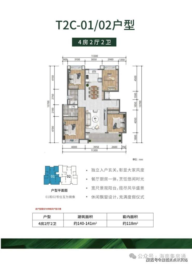 →户型面积段:约110-141㎡(3房/4房)