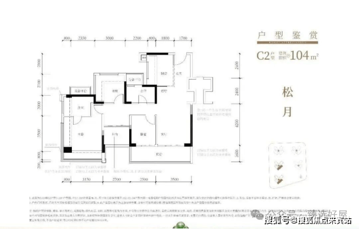 104㎡的4房2厅2卫,折后总价517-601万/套,单价约5-5.81万/㎡。