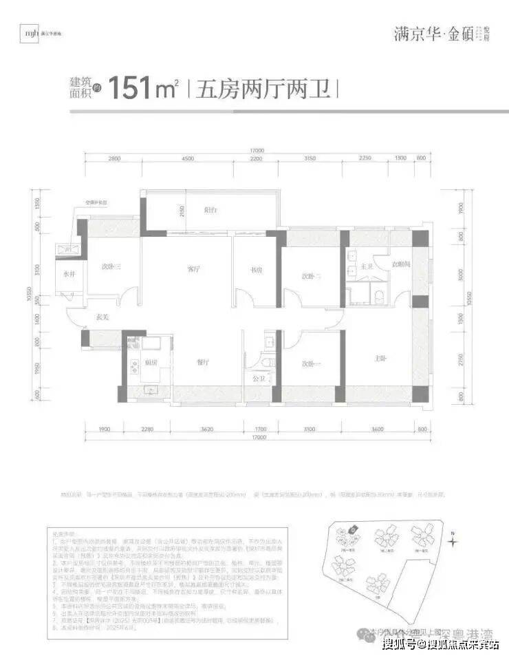 本次推售的是满京华金硕悦府,共由5栋32-48层高的住宅组成,其中1栋1/2单元住宅48F,2栋1单元住宅32F,2栋2单元住宅47F,3栋住宅48F,4栋是1所幼儿园,还配建有社区菜市场,总规划1186户,其中2栋1单元2梯6户,1栋1单元楼王3梯5户,其它栋数全部3梯6户设计。