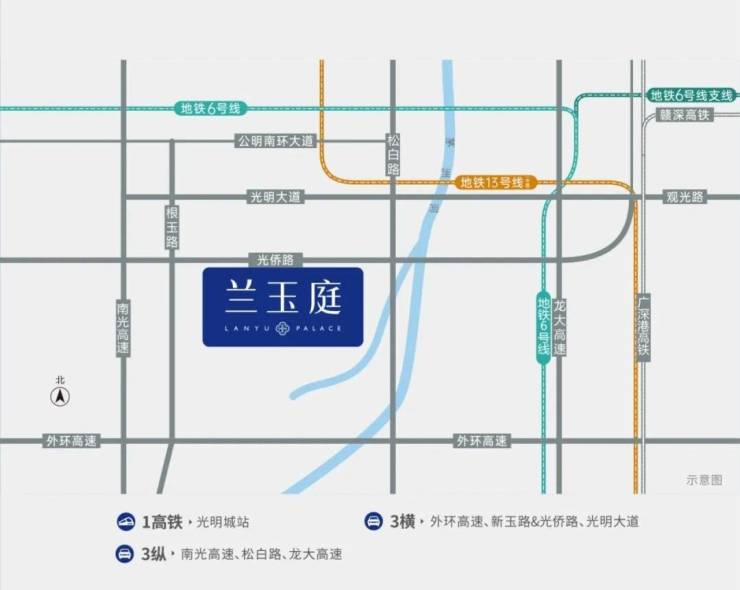兰玉庭出门就是光明主干道光侨路,快速接驳深圳外环高速,南光高速,还有松白路半小时就可以直达南山西丽,当前最近的6号地铁线“长圳站”距离约5公里,后期周边规划有18/29号地铁线“根玉路站”在附近,具体站点不详,其中29号线一期已经启动招标。
