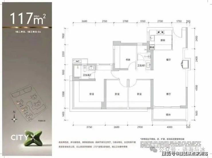 建面约98㎡3房2卫,适合追求尺度的家庭。